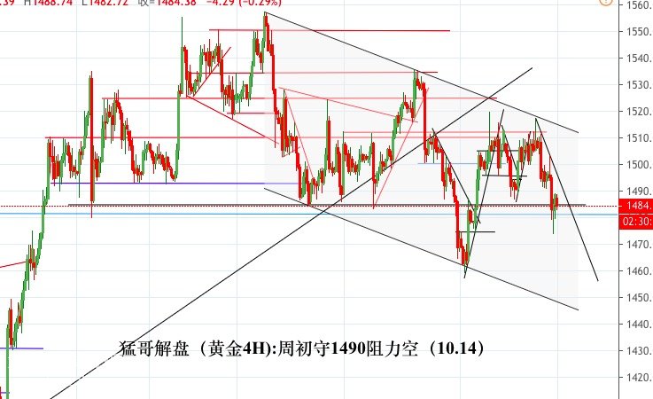 周線的調整需求依然沒有走完,新一輪的單邊走勢還需要耐心等待,加上短周期的弱勢下行格局,交易上繼續保持高空策略不變,周初猛哥認為作為雙頂格局的頸線實體價位也是上周四周五盤中的支撐1490將是短周期的重要阻力點,因為這個位置還是以1517為高點的下降趨勢線的壓制區域,所以周初守1490繼續高空做布局!下方跌破1474后繼續看1460的前低支撐!