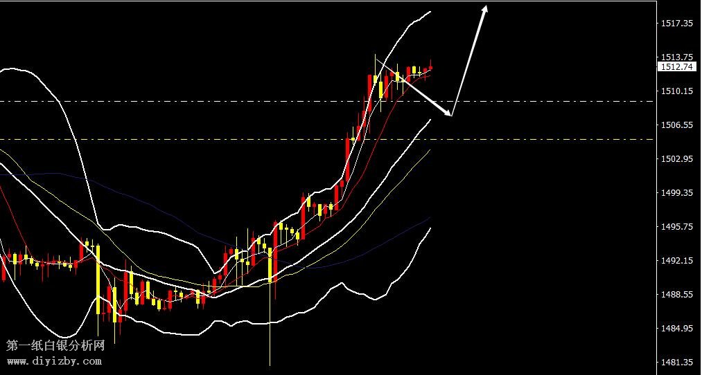 黃金隔日早盤企穩1494美金一路震蕩上漲,晚間美盤最高上漲觸及1514美金,午夜高位承壓1514美金震蕩修正,現價1511美金,整體走勢很強勢,日線報收一根實體中陽K線。