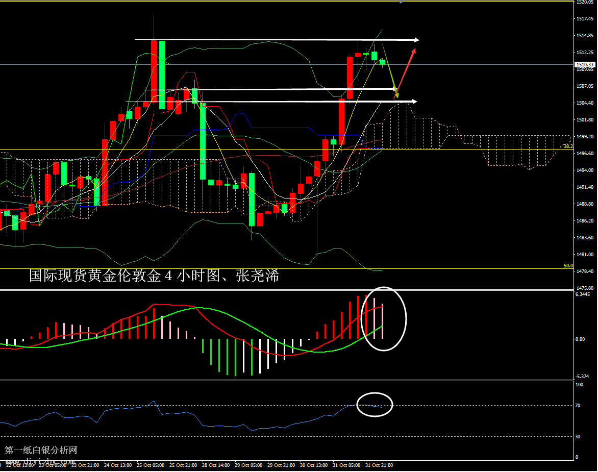 上交易日周四(10月31日)國際現貨黃金倫敦金大幅收漲于1511.92美元/盎司。走勢上,金價自亞市早盤開于1495.45美元/盎司后短暫下跌,錄得日內低點1493.52美元/盎司后反彈,白盤整體表現偏漲,歐盤時段,金價一路上行,到美盤時段,金價多頭繼續(xù)上攻,直線上漲,連續(xù)上破1500及1510兩大關口。錄得日內高點1514.20美元/盎司,之后轉入震蕩盤整之中,終收于1512.80美元/盎司。