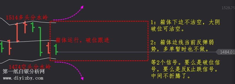這是昨日美盤之后筆者給的分析,其中在1475這里有一個破位沽空的單子。如果掛了破位空(說明投資的功底和經驗比較扎實),如果在1475這里沒有掛破位空(說明投資的心態,技術,還需要加強)。因為1475是非常明顯的多空分水嶺位置。