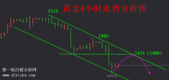 綜上所述:當前技術(shù)走勢圖呈現(xiàn)破位向下的趨勢,因此,黃金需要選擇順勢處理,選擇逢高沽空,逢壓沽涳。參考位置在1475-1480這里。
