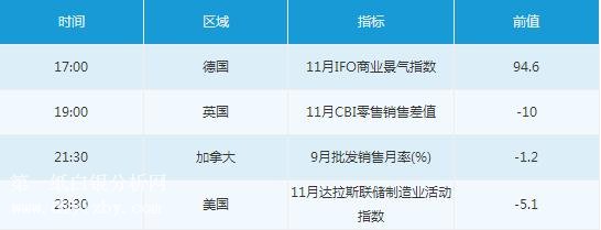 美元指數漲0.31%至98.28,收在11月14日高點(自10月中旬以來的最高價)附近,并在55日、100日和200日移動均線上方;該指數本周累計上漲0.27%。數據顯示出美國經濟增長有力的跡象;Markit服務業、制造業和綜合指數初步數據都超過預期,并且高于之前一個月的水平;制造業數據觸及4月以來最高,11月密歇根大學消費者信心指數也比預期強勁。