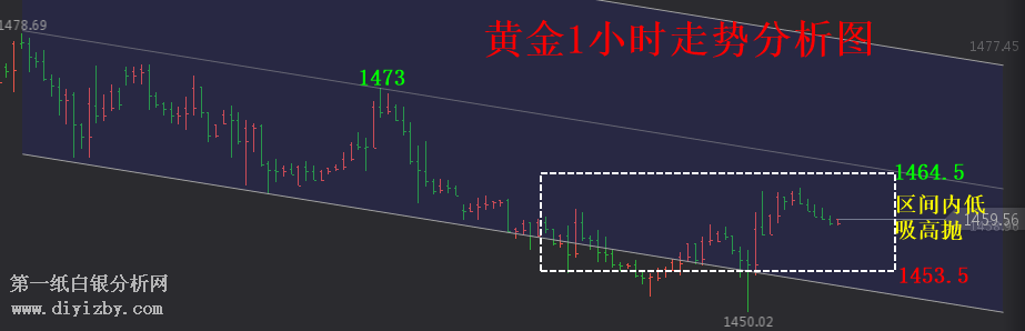 2:黃金1小時暫時是死叉向下,但是跌幅預計有限,畢竟是昨日小V反轉上升,預計白盤還會形成二次上揚,去測試上方的壓力位置。短線的頂底轉換位置1458附近。