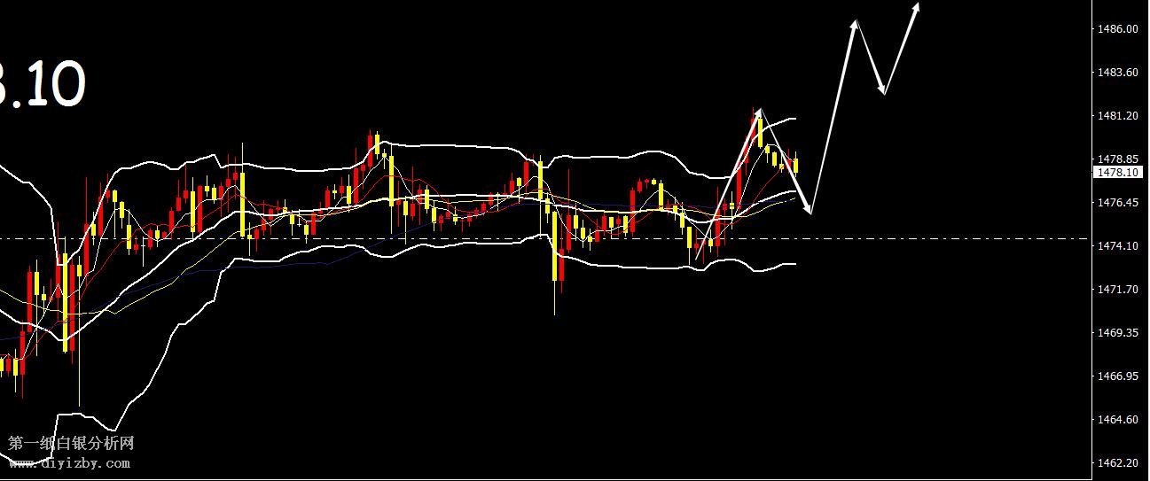 黃金H1走勢圖分析,小時圖布林帶整體依然平行發散運行,黃金本周連續四天做區間震蕩修正,整體運行區間比較小。黃金從趨勢方向上分析,繼續看震蕩反彈,短期的震蕩調整是為了后期的突破拉升蓄勢,現在就是考驗大家的耐心的時刻。黃金只要持有多單,后期二三十點利潤會有的。黃金今日下方關注1475美金支撐,上方壓力關注1486 1490美金,整體思路繼續做多看漲。