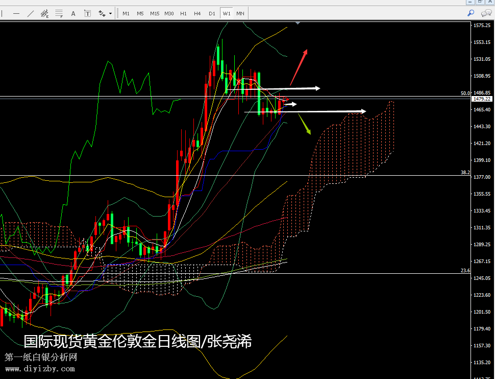 日線級別;金價連續(xù)處于布林帶上行同時震蕩攀升,各指標(biāo)及均線也偏向支撐看漲,但仍多次受制于120及60日均線壓力,另外,云帶下行邊及下行趨勢線壓力也存在強大壓力,這里不僅是反彈的壓力位,也是多頭是否產(chǎn)生延續(xù)大漲的理論點。點位上,關(guān)注1483美元一線阻力,突破可回撤跟多,短線上至1488-1491美元,如基本面無壓力存在,續(xù)看千五到千六。下方關(guān)注1473-1468美元支撐保持看反彈。跌破中軌震蕩盤整繼續(xù)對待。