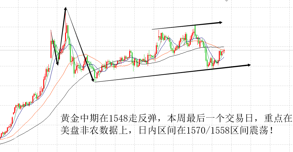 在連續三個交易日的大跌走勢中,周四走出了一個交易日的反彈,從1548開始計算,最高反彈1568,有20美金空間,反彈需求也相對較為旺盛,買盤暫時還是不輕易方向多頭,這個也能理解,畢竟前期黃金的強勢不是幾十美金的空間,周四跟空止損。本周走到目前為止,很明顯重點關注非農數據,本次非農數據較為重要,既是良好的機會,也是契機,本次非農數據可能加速黃金2月看空的進度,改變主力對黃金多頭的信心。從目前看來,黃金日線三連陽狀態,短期內有強勢,日線收口前期講過看支撐在1542附近,既然低點給出了1548,那么空頭暫時的支撐點給在1548,非農利空看跌也關注1548點位,H4周期收口,高點關注1578點位,不會走出過分強勢點,因此,山海看非農預計在1578/1548區間內。對比本次非農數據來看,前置是14.5w,市場預測是16w,根據周三ADP公布的數據對比,本次實際數據預計和市場預測接近,將表明經濟有較好的表現,利空黃金,下跌的具體點位關注1558/1548。交易上,亞歐盤預計在1570/1558區間震蕩,早間1570之下可以交易短空,如果亞歐盤慢跌到1558,那么美盤看非農數據,關注1568/1548區間,如果亞歐盤維持在1568附近,那么美盤關注1578/1548區間。另外,長線思路再次強調黃金空頭2月放量至1500之下不變!