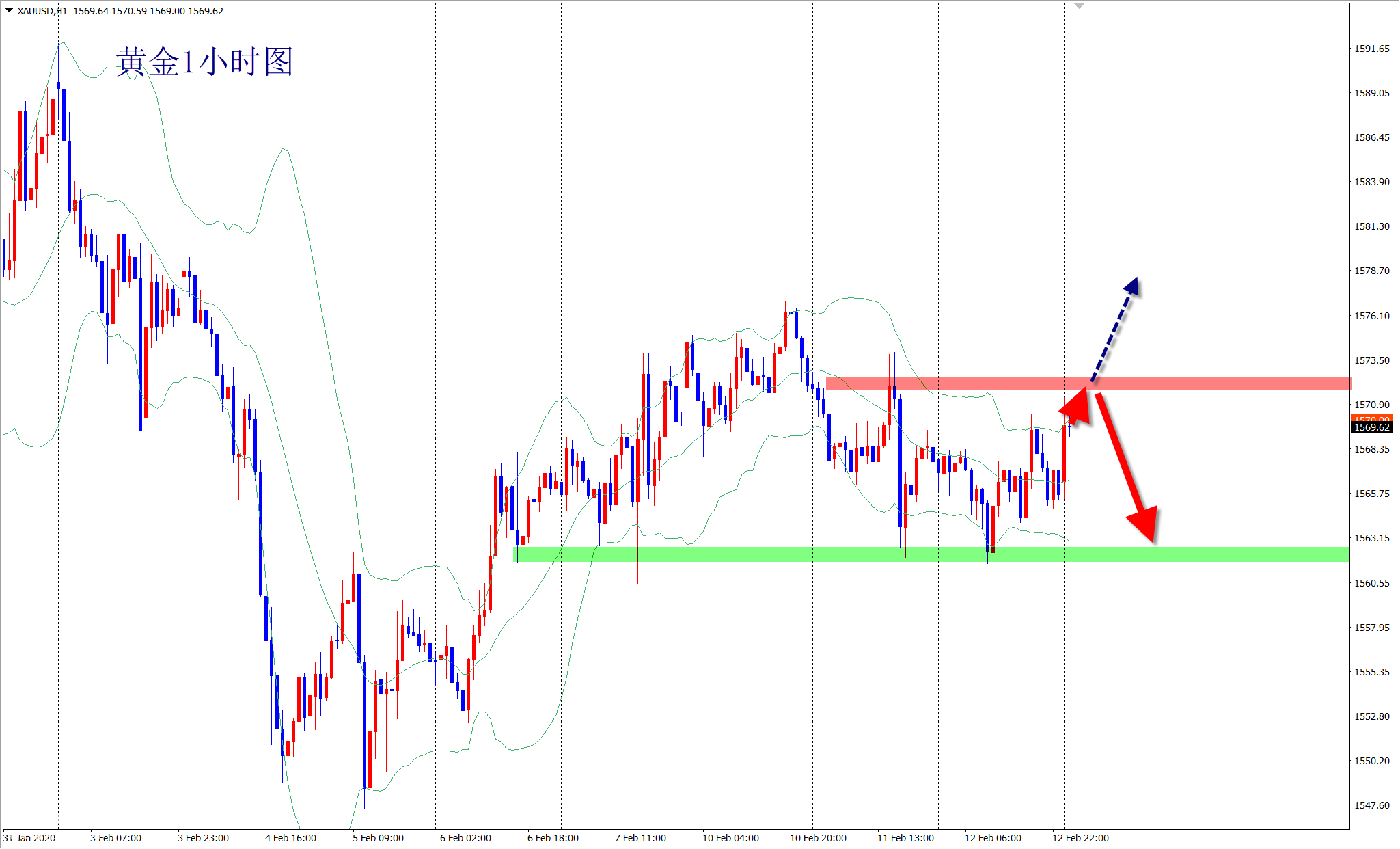 黃金昨日探底回升,今日早盤受到肺炎確診人數大幅增加的影響,黃金避險大漲,早盤重點關注1574位置壓力,反彈不過此位置,黃金還是要繼續回調,我們看跌回調的秒1540區域不變!今日反彈后還是高位為主,除非行情強勢突破1574位置的壓力,否則我們的思路不會改變!
