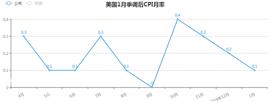 周四公布的美國1月季調后CPI月率為0.1%,低于市場預期0.2%。
