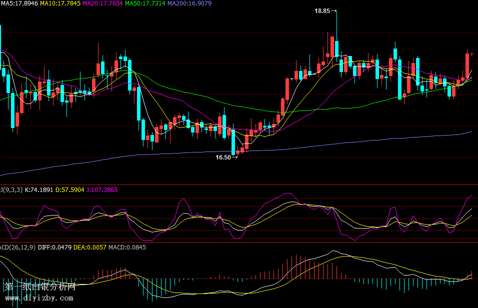 白銀昨日大幅飆升,日圖強勢突破50日均線,上行勢頭維持良好,后市或延續震蕩上行走勢,進一步阻力關注18.35。四小時圖上,銀價連續收陽線上漲,價格突破布林通道上軌壓力,打開上行空間,技術上回落不破18美元整數關口,后市或延續反彈走勢,操作上激進者可持回落輕倉做多思路為主,嚴格設好止損。