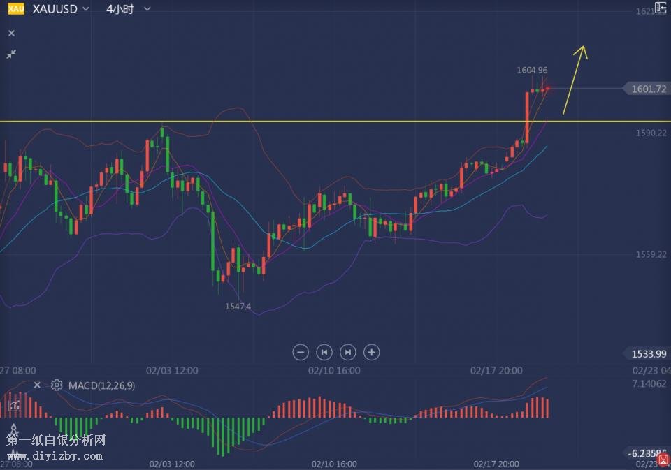 此時,面對金價強勢的拉升,短期將信托1594為支撐點,或者回撤的頂底轉換位置,繼續向上挑戰更高的位置,隔夜金價觸及1605的高點,其實距離前期的位置并不是太遙遠,也可以說是一步之遙,只是時間上的問題。