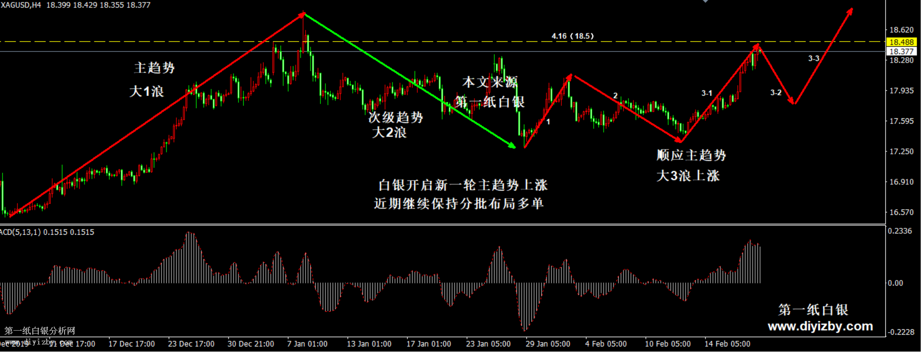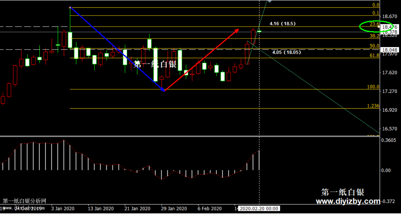 今日下方關(guān)鍵支4.03~4.05(17.95~18.05)、3.97~3.98(17.65~17.7)。今日上方關(guān)鍵阻力4.16(18.5)。 提示:技術(shù)僅僅是基于概率論和統(tǒng)計學(xué)的一種綜合分析手段,絕非預(yù)測。所以技術(shù)分析是在考慮做好止損的情況下去博取大概率事件,投資不可過于迷信技術(shù)分析。(短線操作請一定做好止損,一旦被損,代表分析師基于概率和統(tǒng)計的技術(shù)分析不適用于當(dāng)前行情) 另外,由于紙白銀價格是國際銀價換算而來,而換算過程中涉及到人民幣對美元匯率的變化,即使在國際銀價不變化的情況下,如果人民幣貶值或升值,也會導(dǎo)致紙白銀價格出現(xiàn)變動。因此,我們的分析只采用最新的國際銀價對應(yīng)的人民幣白銀價格,如與過去分析價格有出入, 投資者應(yīng)知曉其原因。 1、文中價格為紙白銀價格,括號內(nèi)為國際銀價,投資者可雙向參考。 2、以上價格為工商銀行買入價,即紙白銀低價。進倉點位要再加點差(各銀行點差不一),出倉則不要。 3、第一紙白銀給出的所有建議僅供投資者參考,不作為下單依據(jù),作者不持有白銀,也不計劃買入。觀點僅供參考,不構(gòu)成投資建議,風(fēng)險自擔(dān)。 4、北京時間09:00發(fā)布此文章。 5、上一交易日白銀價格分析情況:(2月19日)白銀強勢拉升確認(rèn)漲勢 近期繼續(xù)分批布局多單