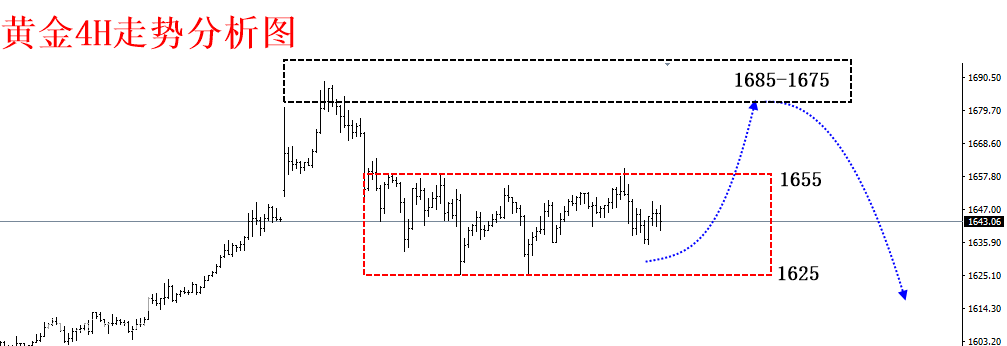 黃金昨日依舊保持區間震蕩,梳理一下時間以及走勢可以看到,黃金周一避險爆發助推上升1690附近,隨后周二到周四,三天時間,形成中間1625-1665的區間震蕩。三天時間震蕩修正,那么第二階段的方向也就要先走出來,然后在進行中期方向的選擇!