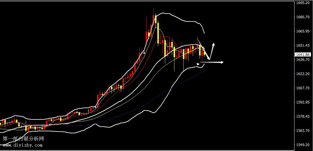 黃金H4走勢圖分析,四小時圖布林帶目前高位逐漸縮口,黃金后面運行區間預測會逐漸減小。四小時圖今日下方支撐關注其布林下軌1635美金,上方壓力關注隔夜反彈高點1660美金,日間亞歐盤先看1635-60美金區間震蕩吧。近期黃金大區間來回震蕩,多空都有機會,關鍵在于進場位置的確定,不然很容易被打掉。