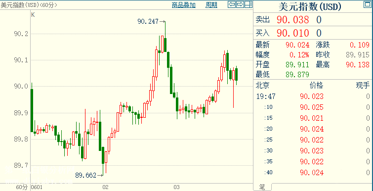 北京時間19:47,現貨黃金下跌0.74%至1894.30美元/盎司;COMEX期金主力合約下跌0.71%至1896.4美元/盎司;美元指數上漲0.13%至90.022。