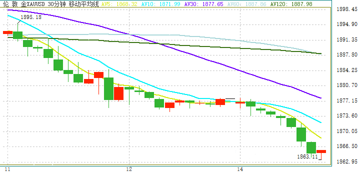 上周,五金價格大幅下跌,最高接近30美元,最低為每盎司1874.31美元。上周,金價也連續第二周收跌。亞洲市場周一開盤后,金價繼續下跌,最低跌至1863.11美元/盎司。