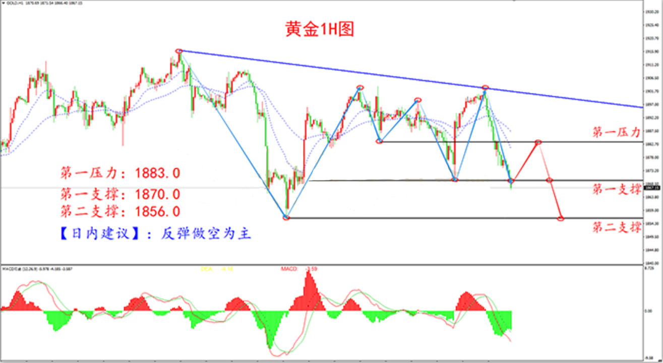 空單:1883.0附近嘗試做空,止損1888.0,目標1870.0、1856.0附近。