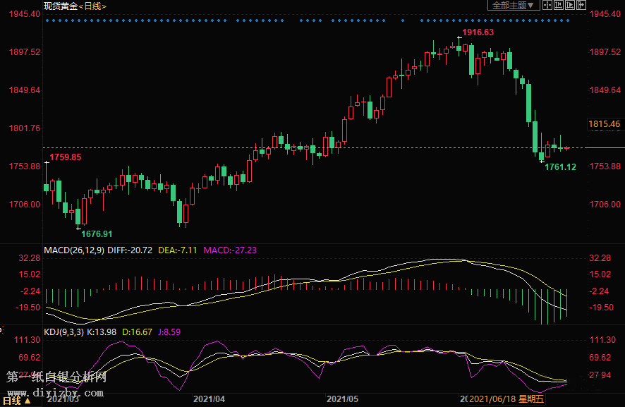 周二(6月29日)亞洲現(xiàn)貨金交易量約為1779美元。周三(6月23日),金價(jià)大漲大跌,最終穩(wěn)定在1778年左右,鮑威爾的鴿派言論一度鼓勵(lì)金價(jià)上漲。然而,美國強(qiáng)勁的制造業(yè)數(shù)據(jù)和官員的強(qiáng)硬表態(tài)打擊了多頭的信心。