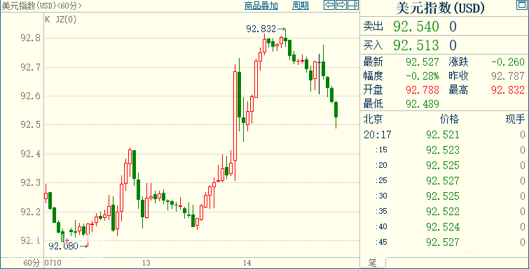 北京時(shí)間20:19,現(xiàn)貨金上漲1.02%,至1825.93美元/盎司;紐約商品交易所黃金期貨合約上漲0.93%,至1826.9美元/盎司;美元指數(shù)下跌0.28%至92.531。隔夜公布的美國6月份通脹數(shù)據(jù)飆升,引發(fā)市場(chǎng)對(duì)美聯(lián)儲(chǔ)將加快結(jié)束極度寬松貨幣政策的預(yù)期,美元指數(shù)隔夜大漲0.6%。