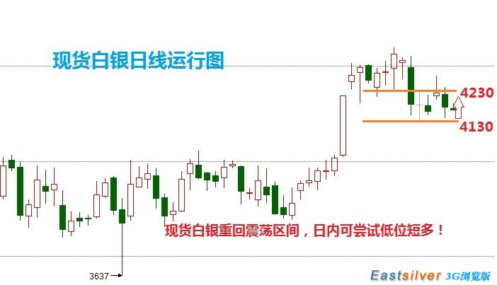 盡管從長(zhǎng)期的趨勢(shì)來(lái)看,現(xiàn)貨白銀仍然處于下行的趨勢(shì)之中,但是中期來(lái)看,現(xiàn)貨銀直接跌破3600價(jià)位并延續(xù)下跌走勢(shì)的時(shí)機(jī)還未到來(lái),在今后一段時(shí)間內(nèi)現(xiàn)貨白銀有很大的可能會(huì)延續(xù)中期的震蕩走勢(shì),震蕩區(qū)間在3600-4600,而目前銀價(jià)已經(jīng)運(yùn)行到震蕩區(qū)間的下線,所以對(duì)于中線投資者來(lái)講,我們認(rèn)為目前可以考慮適當(dāng)?shù)姆峙季侄鄦,而?duì)于短線投資者來(lái)講,今后一段時(shí)間也應(yīng)該盡量的以多頭操作為主,預(yù)計(jì)此輪中期走勢(shì)可能會(huì)持續(xù)3-6周的時(shí)間,如果銀價(jià)跌破3600價(jià)位,則我們就需要重新判斷中線趨勢(shì)!
